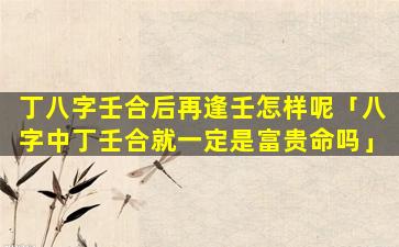 “丁八字 🐕 壬合后再逢壬”的说法 💐 出自八字命理学,具体 🌲 含义如下: