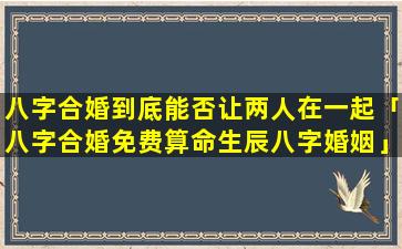 对于八字 🕸 合婚能否让两人在一起,历来存在争论。以下是一 ☘ 些不同的观点 🌵 :