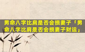 具体分析因 🕷 此,是,否,比肩会损害妻子财运需要具体分析八字格局综合考虑比肩 🕊 的旺衰妻财的、强、弱以及其他因素的影响。不。能简单地认为男命中出现比肩就一定不利于妻子财运