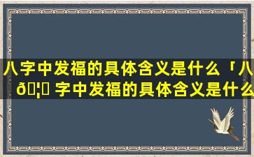 八 🦄 字中发福指的 🌿 是命主在运势 🌳 上享有富裕、安、康福气的意思,具体含义如下: