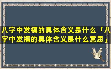 八字中 🌾 ,发福是指一个人的命运中蕴含 🌾 着富贵和 🌷 安乐的机会。它。反映了一个人一生中财富和幸福的潜力