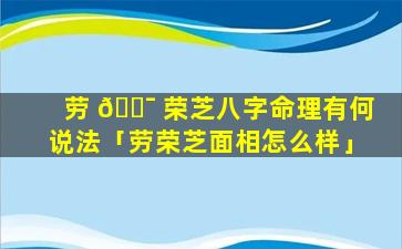 劳荣芝八 🦋 字 🕸 命 🦢 理