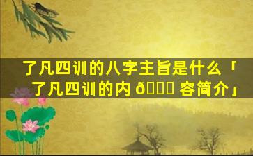明朝袁了凡撰 🐠 写的了凡《四训 💐 》,包 🕊 含以下四训:
