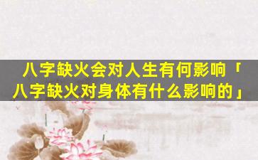 八字缺火 🐱 的 🐳 影 🪴 响: