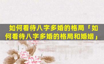 多婚格局 🦋 与婚姻的影响