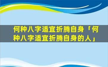 适宜折 🦈 腾自身的八字 🐱 特征:
