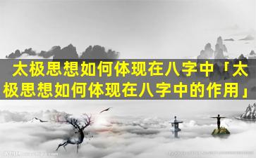太极思想是道家哲学的核心思想,强调阴极生阳阳极 🦟 生阴阴阳、互、化,万 🐛 事万物循环往复的理念。八。字命理学 🌷 中也体现了这种太极思想