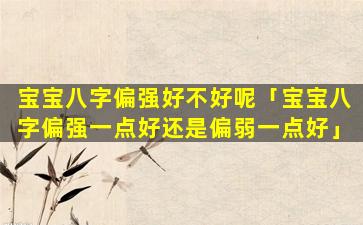 一般来说,宝,宝,八字偏强需要适当调和避免太过刚强宝宝八字偏;弱,需,要增强其能量 🦊 避免太过柔 🐺 弱。可以通过起名、佩,戴,吉。祥物等方式对八字进行调整以达到阴 🐈 阳平衡趋吉避凶