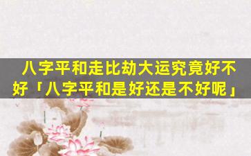 八字平和走比劫大运的吉凶 🌴 ,需要综合以下因素进行判断: