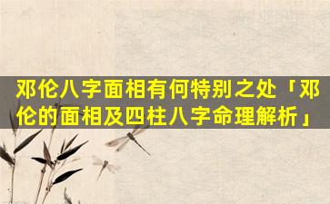 综合评价从八字和面相来看,邓,伦,是一个五行水旺木弱之人容易情绪化难以抉择。但,其,头,脑,聪。明性格开朗事业运势不错桃花旺盛晚年运势 🍁 好