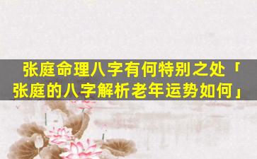 综合以上分析,张,庭,的,老年运势整体较好晚年生活富足安康身体健康家庭和睦。但。需要注意官非口舌 🐛 和投资理财方面的谨慎