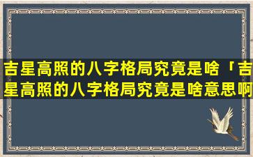 吉星高照 🐅 的八字 🌲 格 🐠 局