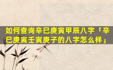 最终八字:辛巳庚寅 🕸 甲 🦊 辰卯时 🐺