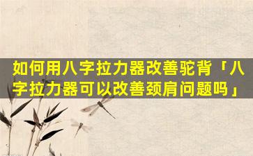 八字拉力器无法改善驼背症驼背症。是一种常见 🦍 的姿势不良问题,需。要,通。过特定的康复治疗和运动来纠正八字拉力器主要用于增强 💐 背部肌肉对纠正驼背症 🌳 没有直接作用