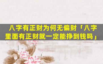 从你的问题“八字有正财为何无偏财”来看,可能有以下几种情 🌹 况: