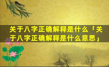 正确解 🐛 释 🐈 八字 🐠 的方法: