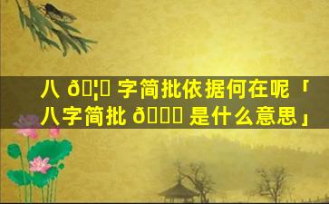 八字简批的依据在于中国传统 🌿 命理学中的一种占卜方 🐺 法,称为八字“预测”。