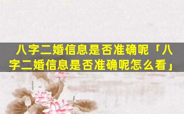 八 🦟 字中看二婚的信息是否 🐞 准确