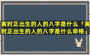 寅时正(凌晨3点点5出)生的人八 🐬 字命格为: