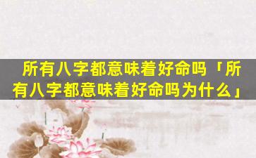 否,不是所有 🐬 八字都 🍁 意味着好命。