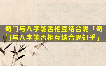 奇 🌳 门遁 🕸 甲与八字能否 🌼 相互结合?