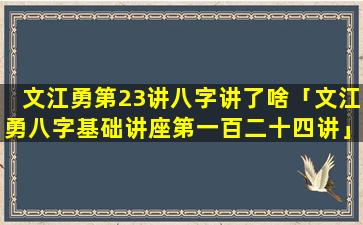 文江勇第23讲八字主 🦊 要 🐧 讲了以下内容:
