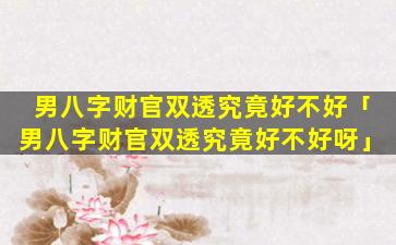 男八字财官双透,大,吉大利的可能性很大但 🌴 具体需要 🌴 结合八字整体 🦆 来判断。