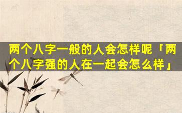 总体而言:两个八字一般的人结婚婚,姻运势 🐳 并不能完全确定。需,要结,合。具体的八字内容综合分析以上因素才能做出相对 🐶 准确的判断
