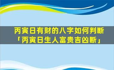 丙 🦆 寅日 🌳 有财的八字判断方法 🌻