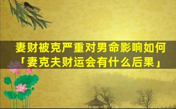 妻财 🌸 被 💮 克严重对 🦉 男命的影响