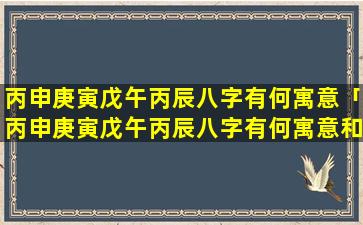 丙申庚 🌲 寅戊 🌼 午 🐯 丙辰八字的寓意: