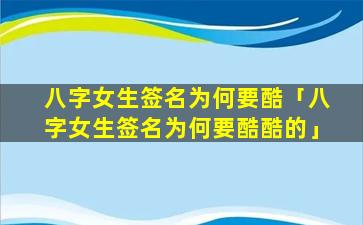 “八字女生签名要酷”的说法没有明确的根据签名。是一个人的个人风格和品味的体 🐵 现,与。性别或生辰八字并没有直接联系