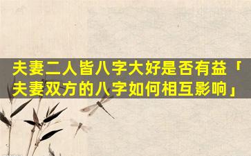 夫妻双方八字大好 🐞 对于婚姻的影响: