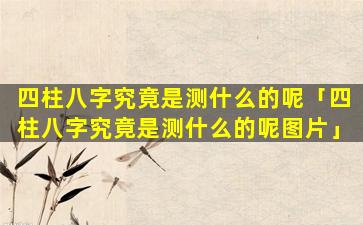 [视频] 四 🪴 柱八字究 🍁 竟是测什么的 🐳 呢?
