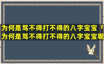 “骂不得打不得的八 🌳 字宝宝的”说法是一种民间传说或迷信,没有科学依据。任,何。孩子都不应该受到打骂他们的身心 🦅 健康应受到尊重 🦊 和保护