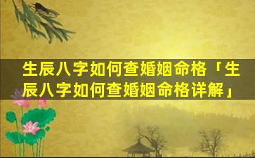 生辰 🪴 八字查询婚姻命格的方法