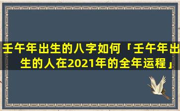 壬午年出 🐬 生的人 🐦 在年2021辛丑牛年,整,体运势平稳机会与挑战并存。