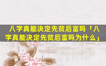 八字理论是否能 🐈 准确预测先贫 🐒 后富