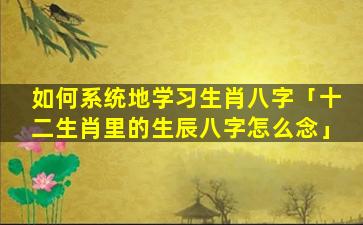 如何系统地 🌷 学 🐛 习生肖八字