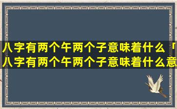 在八字命理学中八,“个午两个子 🦊 ”代表的含 🦉 义如下: