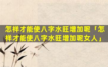 增加 🐋 八字 🐶 水旺的女性方法 🐠