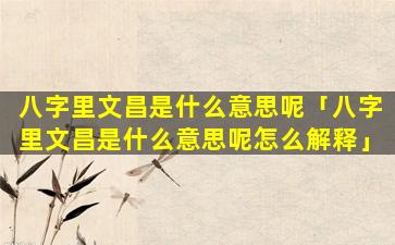 在八字命 🦋 理中 🐅 ,"文"昌,是紫微斗数中的一颗星曜主司文 🌲 书、考、试文、化教育等事宜。