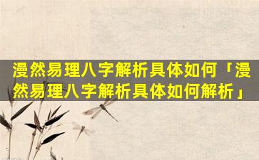 注意:八字解析需要对易 🐅 理知识有深入的理解和经验 🦆 积 🐛 累。