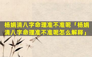 杨娟清八字命理的准验度因人而异,没有明确 🐧 的科学证 💐 据支持或反驳其准确性。