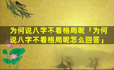 说八字不看格局是一个错误的说法八字格局是八字。预测中非常重要的一个基础概念是,判 🐞 。断一 🐕 个人吉凶祸福的重要依据 🦟