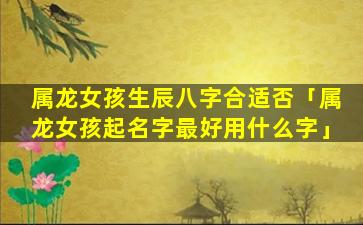 因此,要,准确判 🐱 断属龙女孩的生 🐴 辰八字是否合适需 🦢 要根据具体出生日期和时辰进行专业测算。