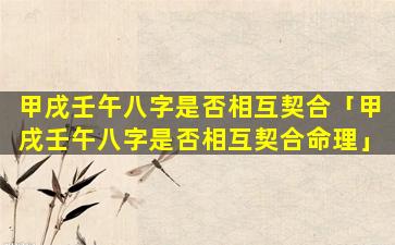 甲戌年和壬午年的生 🍀 辰八字是 🐞 否相互契合命理