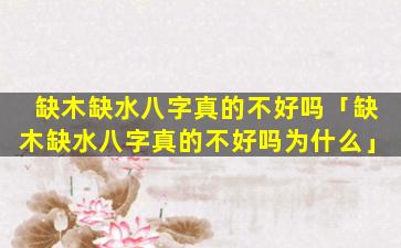 在八字命 🦁 理学中,缺木缺水 🐼 并不一定不 🐬 好。
