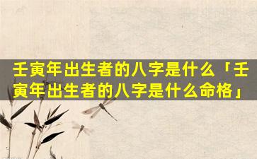 壬寅 🌻 年出生 🌳 者的 🪴 八字命格