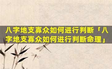 八字地支寡 🐧 众的判 🌸 断 🌳